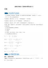 重难点突破01玩转指对幂比较大小目录(1)利用函数与方程的思想,构造函数,结合导数研究其单调性或极值,从而确定a,b,c的大小.(2)指、对、幂大小比较的常用方法:①底数相同,指数不同时,如和,利用指数函数的单调性;②指数相同,底数不同,如和利用幂函数单调性比较大小;③底数相同,真数不同,如和利用指数函数单调性比较大小;④底数、指数、真数都不同,寻找中间变量0,1或者其它能判断大小关系的中间量,借助中间量进行大小关系的判定.(3)转化为两函数图象交点的横坐标(4)特殊值法(5)估算法(6)放缩法、基本不等式法、作差法、作商法、平方法(7)常见函数的麦克劳林展开式:①②③④⑤⑥题型一:直接利用单...